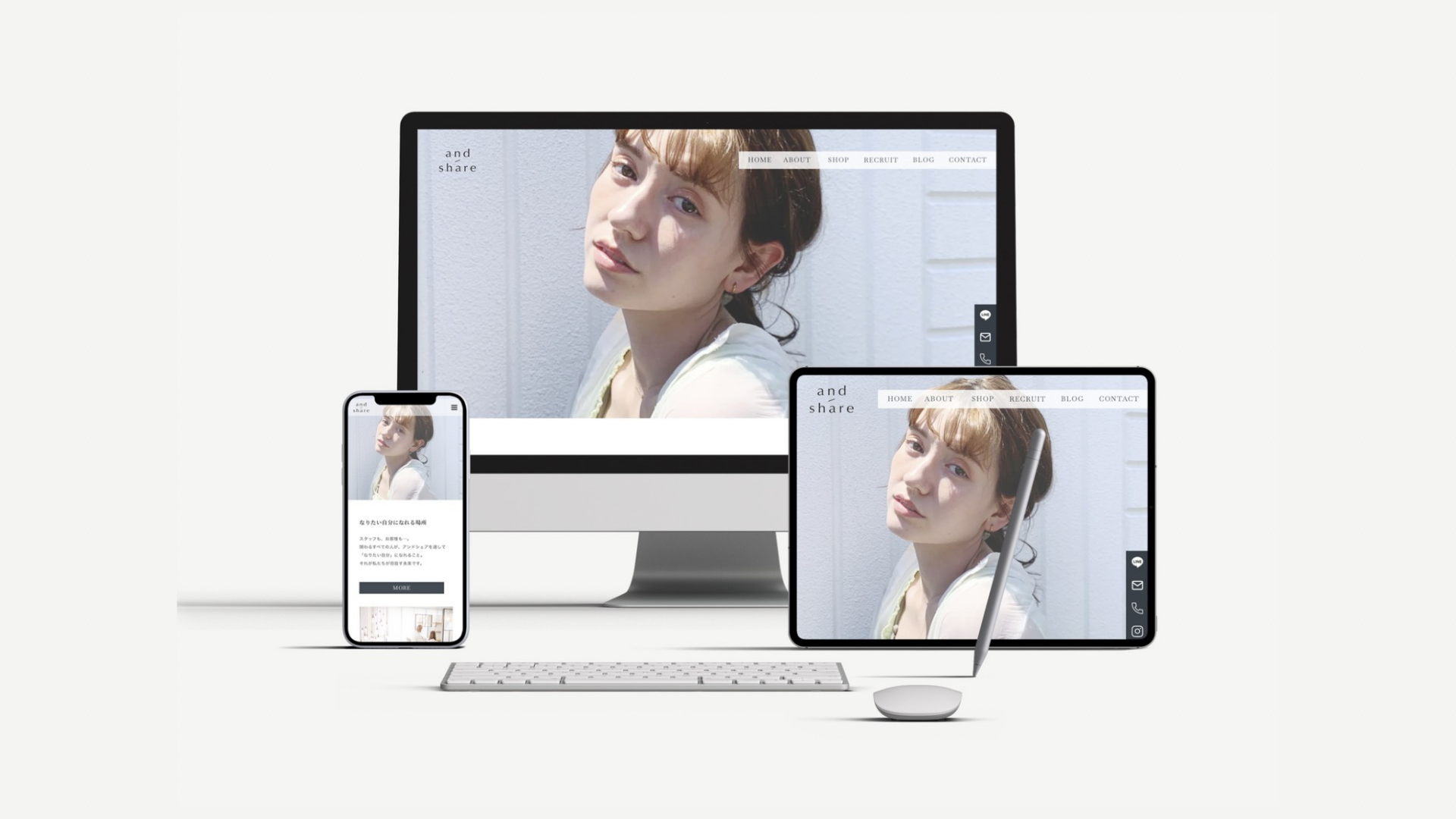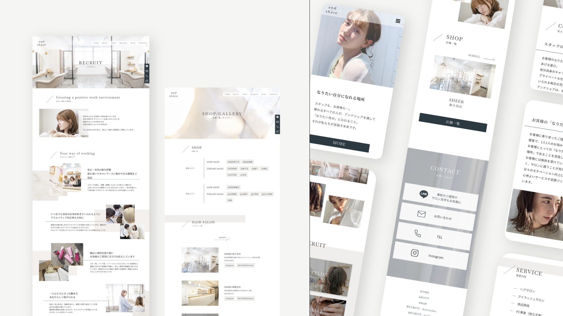 アンドシェア様のサイトでは、美容業界らしい洗練された雰囲気と、働く人の魅力が感じられるビジュアル設計を大切にしました。