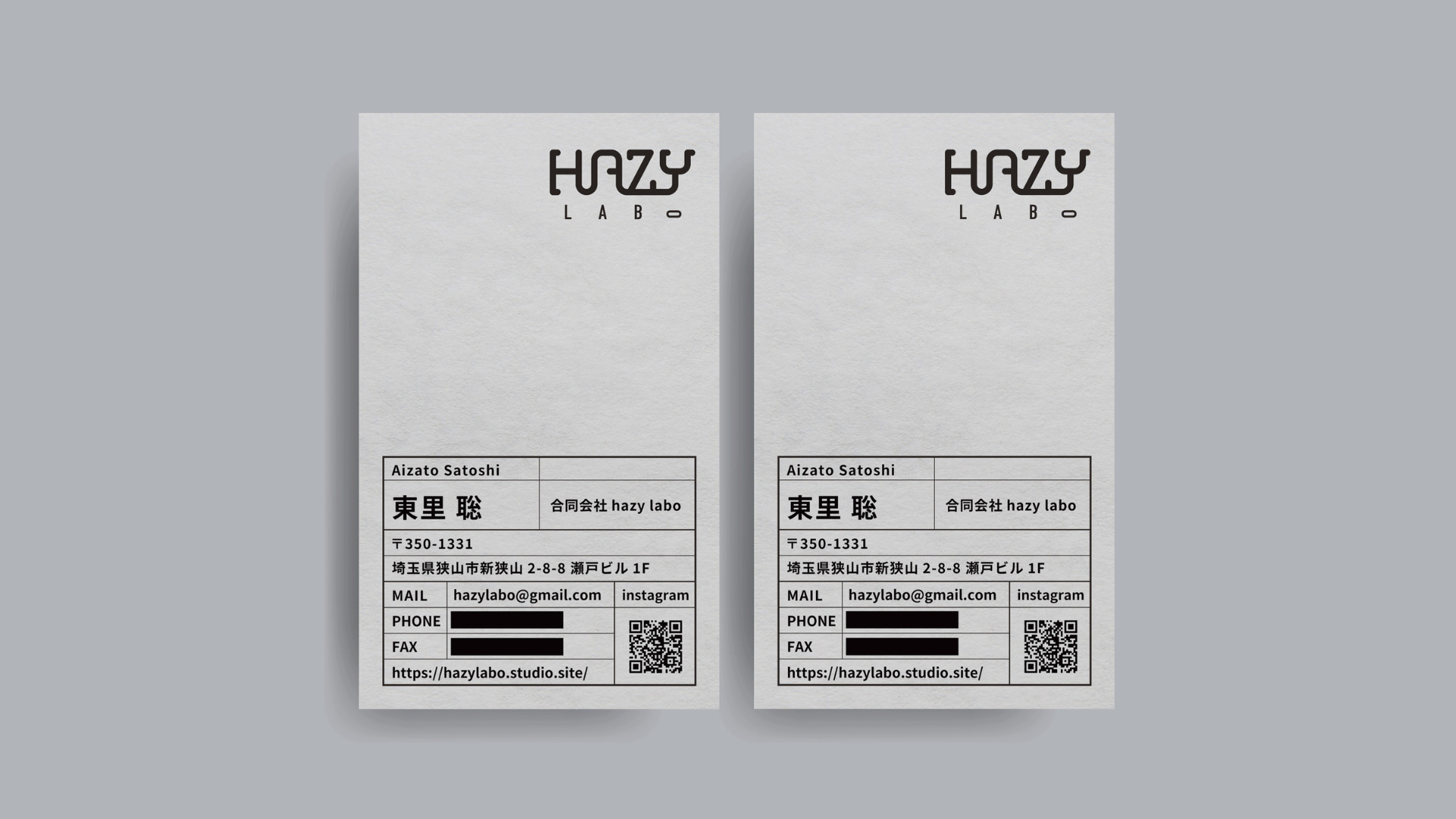 今回の名刺では、ロゴやホームページのデザインコンセプトと統一することで、HAZY LABO様のブランドイメージが一貫して伝わるように設計しました。
